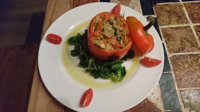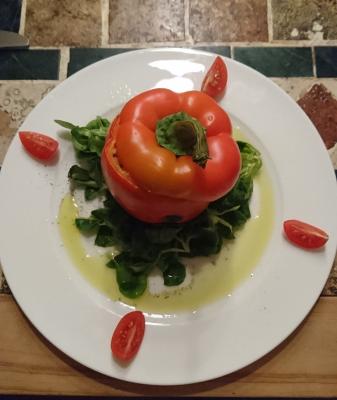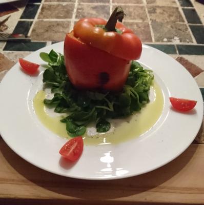 Mit Gemüsereis gefüllte Paprika auf Feldsalat